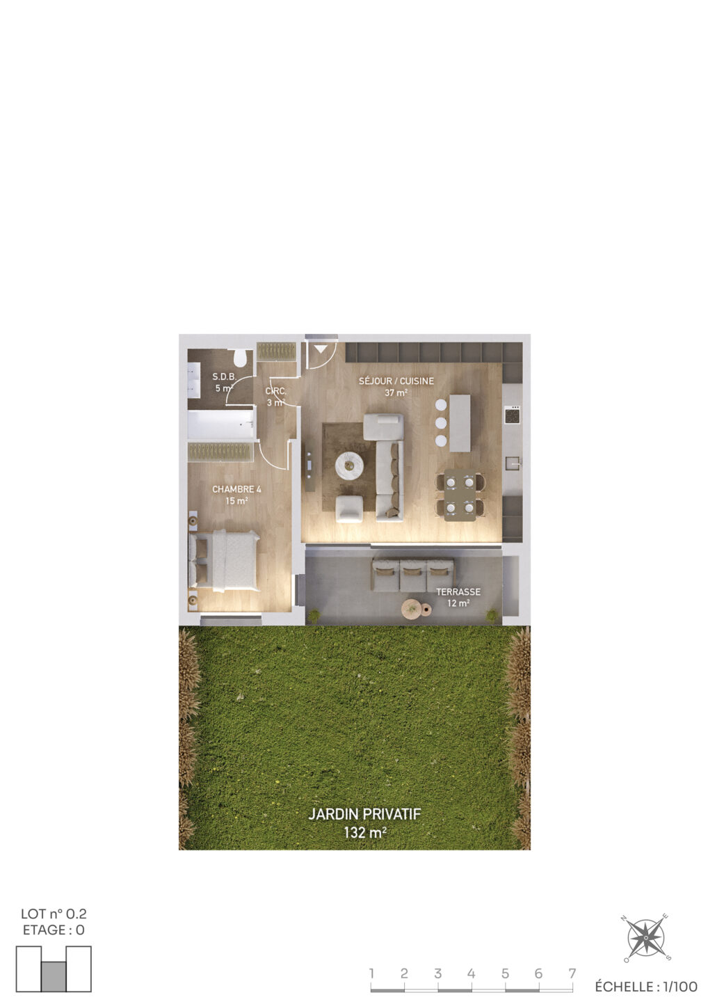 | Lot | Pièces | Surf. PPE | Jardin | Prix hors parking | ||||