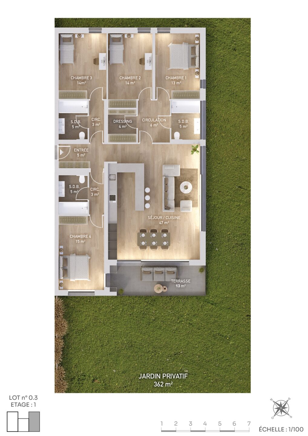 Les logements ont été́ pensés pour votre quotidien. Fonctionnels et pratiques, conçus avec des matériaux sélectionnés soigneusement, ils vous promettent tout le bien-être dont vous aurez besoin pour débuter votre nouvelle vie, ici, à Boréale.