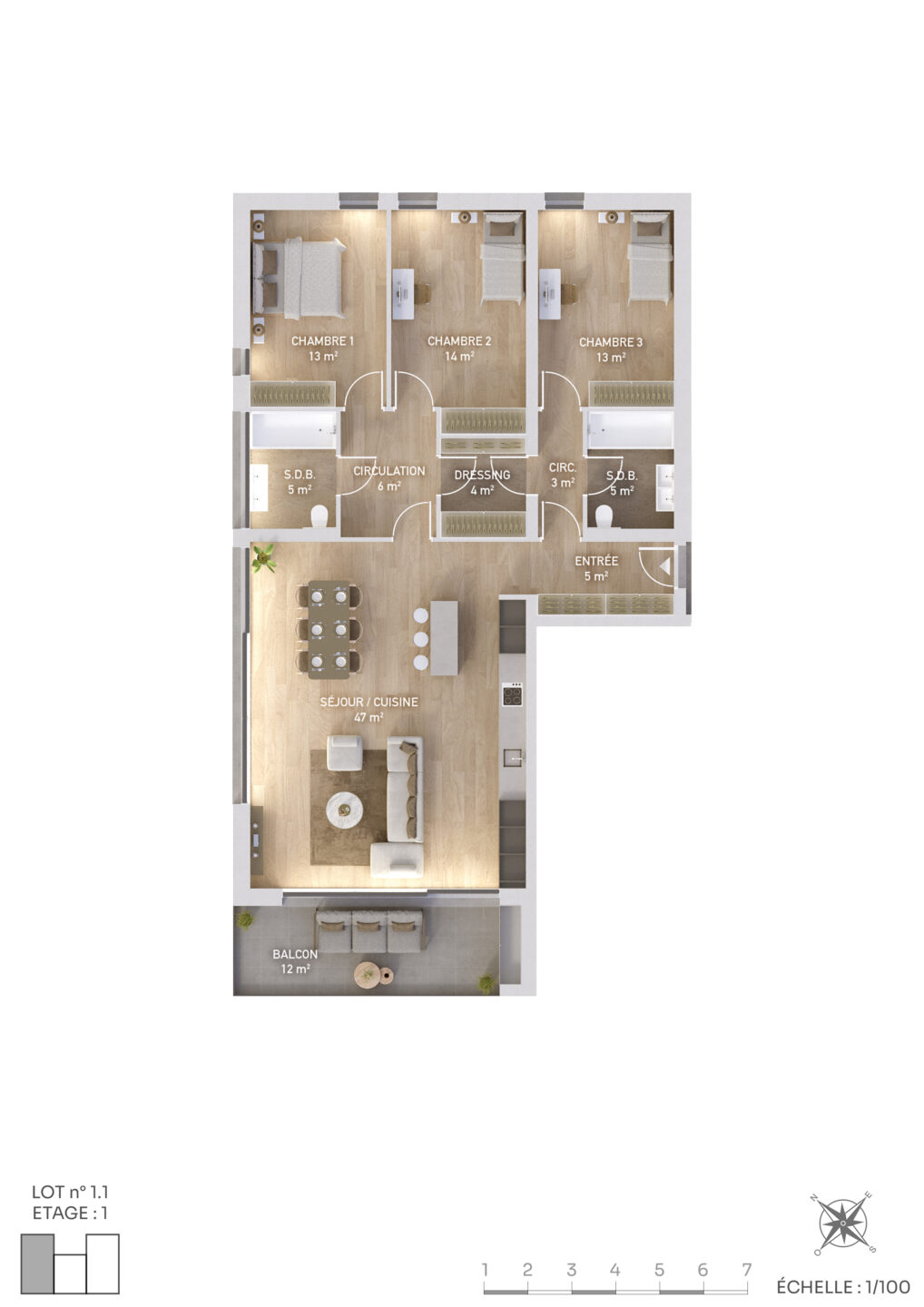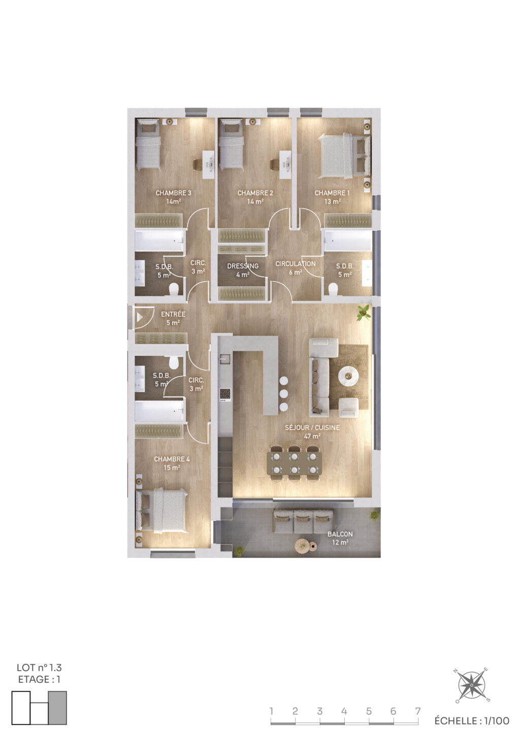 Les spacieux appartements, au design actuel et épuré, sont constitués d’une à quatre chambres. Libre à vous de les moduler au gré de vos désirs et nouveaux projets.